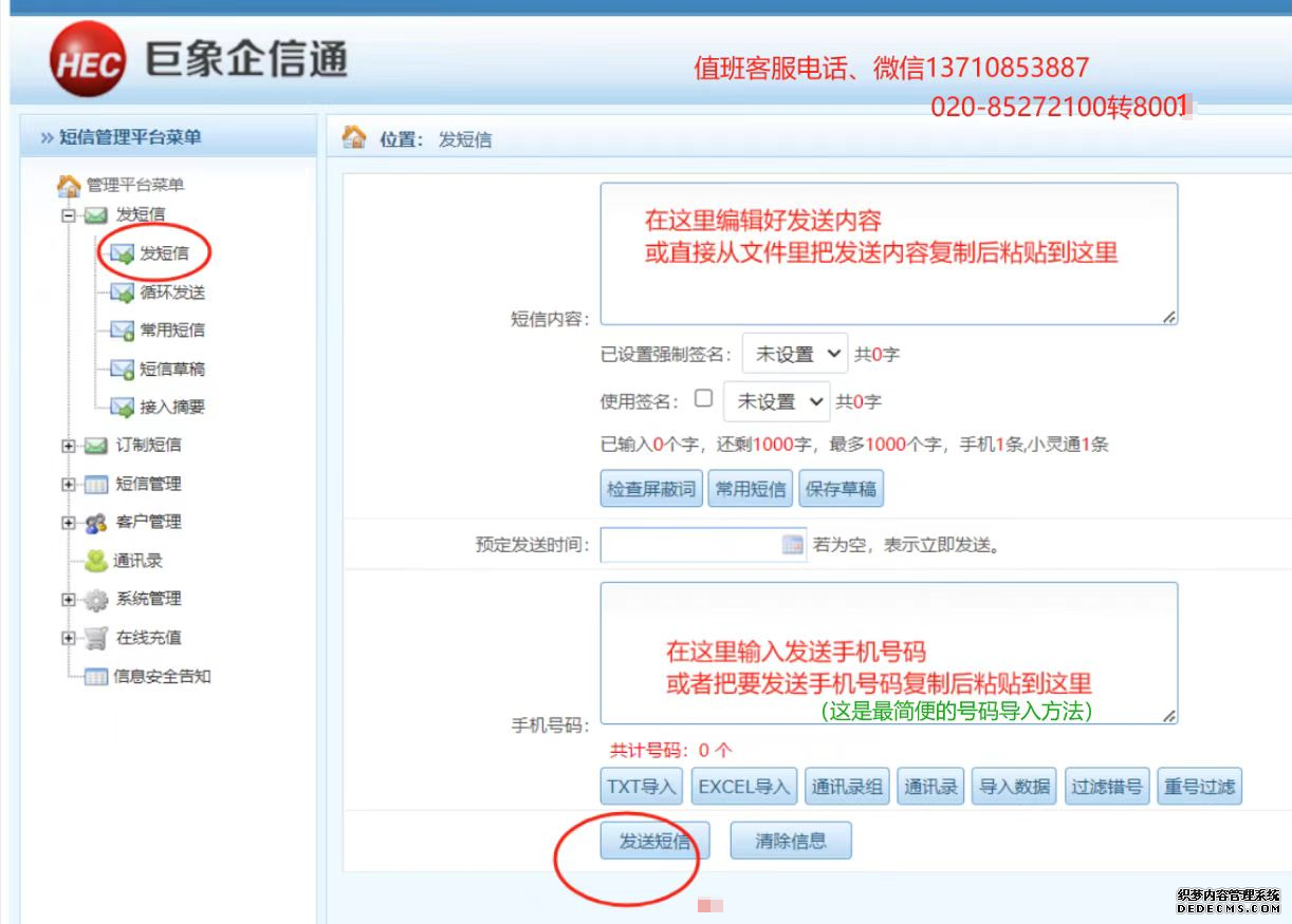 1、招工招聘短信群發,即面向所有發送對象的發送內容是一樣的情況下直接用平臺的群發功能,如下圖所示。